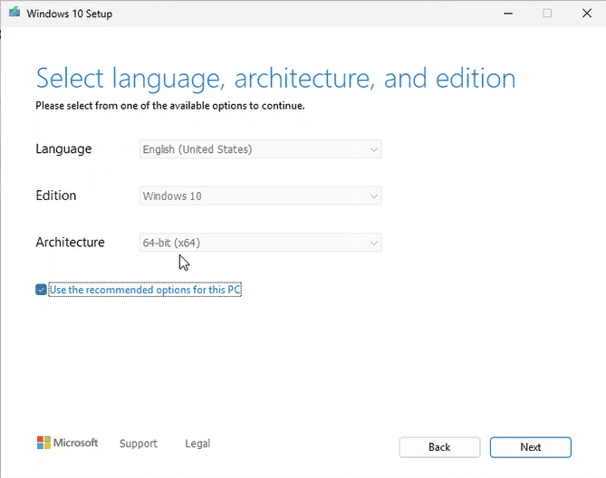 Nota: Al iniciar la herramienta, aparecerán tres ventanas de configuración inicial (aceptar cambios, aceptar términos, elegir idioma y versión de Windows). Siga las instrucciones que aparecen en pantalla.